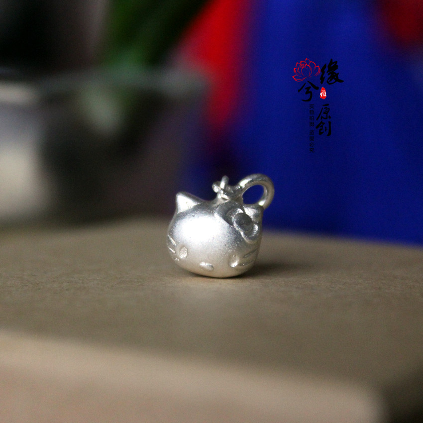 缘兮原创手工编织DIY配件 925纯银KT猫吊坠挂件