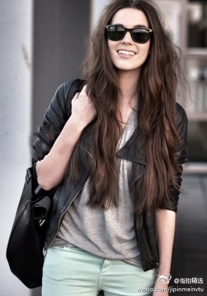 长头发,墨镜,随意的感觉