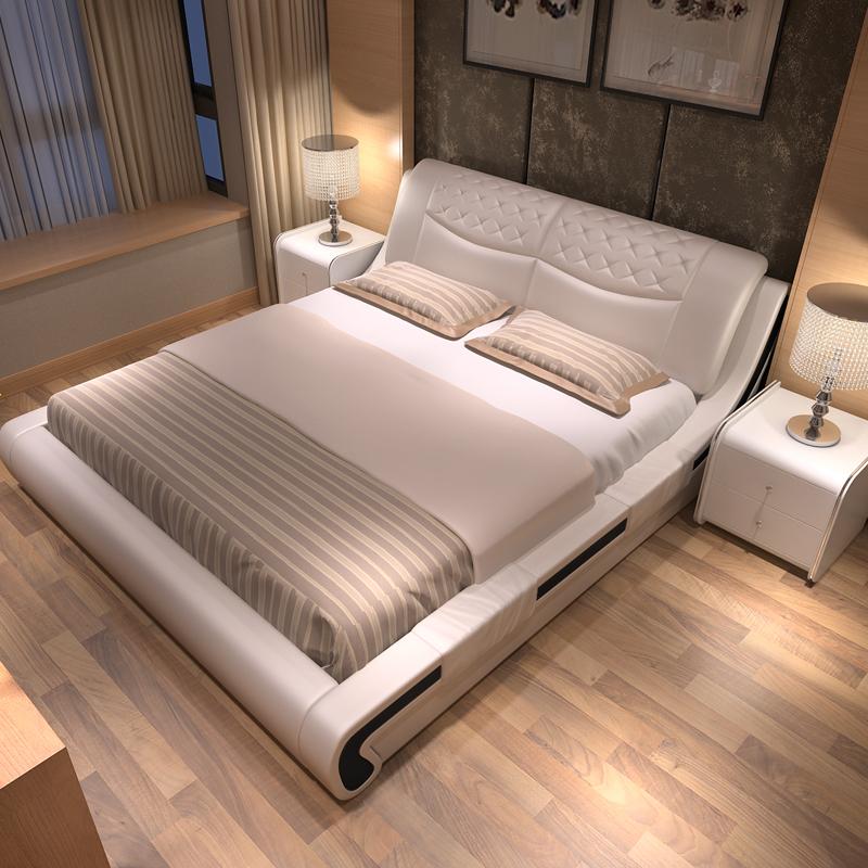 现代简约 高档双人皮床 1.5米1.8米皮艺床 软包床 婚床 软床