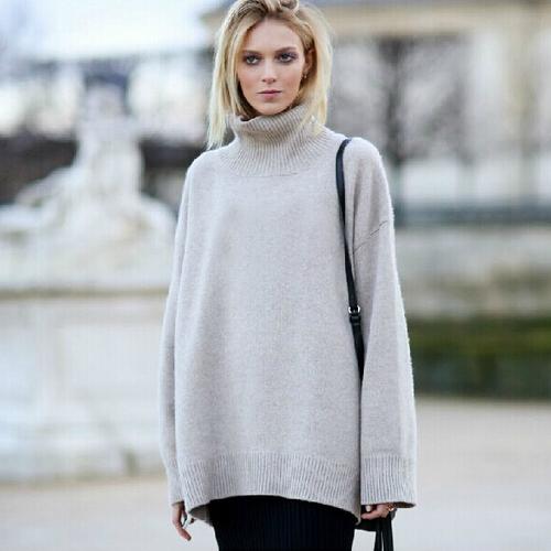 穿上超有范,宽松高立领中长毛衣!上身效果超乎想象,茶自留