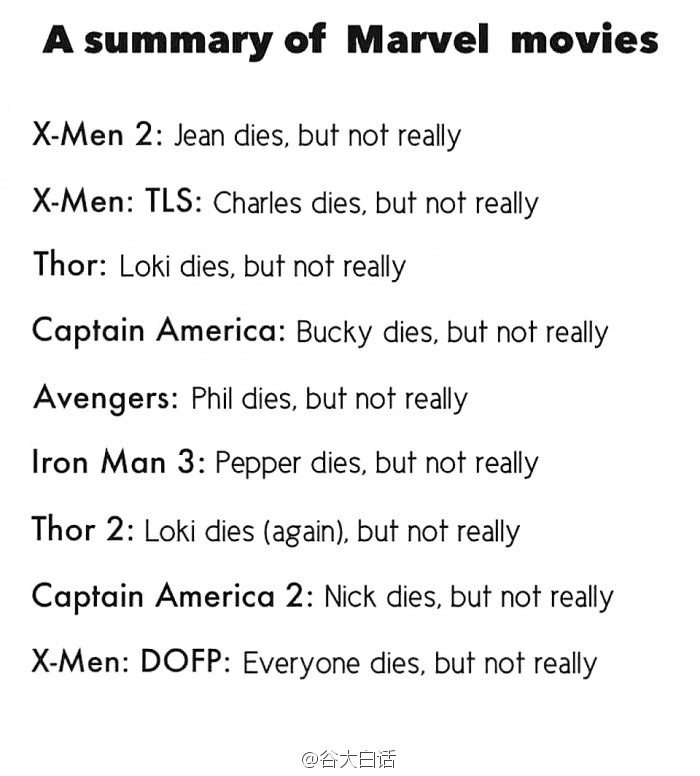 一句话概括所有漫威电影的剧情。[via 9GAG]服!