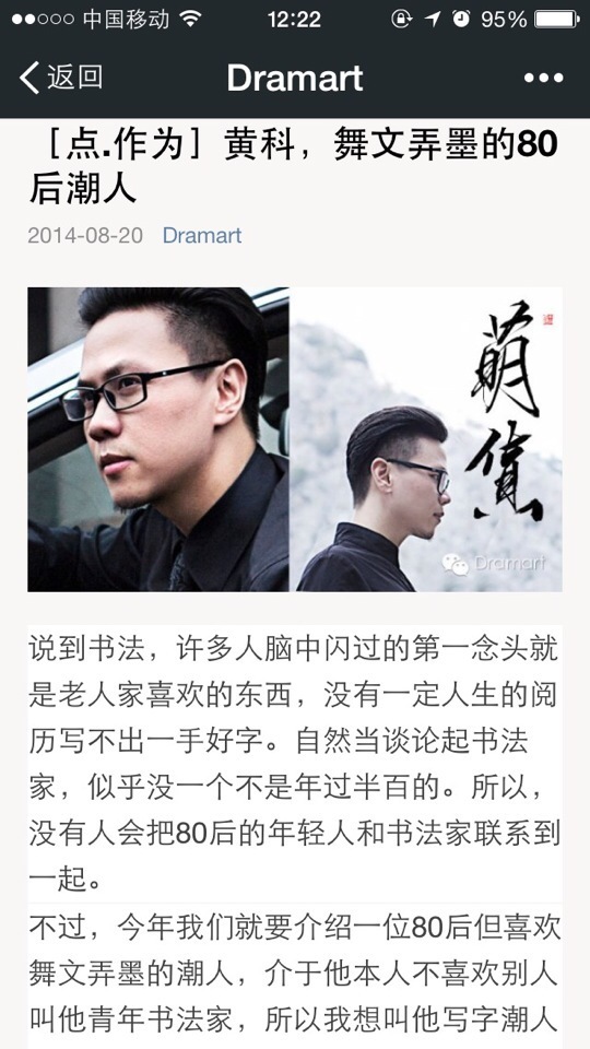 昨晚刷微博无意中看见他拍的一段视频,视频的内容是他为自己的店试笔。一边看视频一边无限感叹竟有人写毛笔字写得如此美妙。于是特意去看他的微博,里面有他的毛笔淘宝店有他的团队有他的生活……更有他点点滴滴的努力。如此才华横溢,令我仰慕不已,再从他联想到自己,自己无德无能,平庸平碌平平无为。自己懂得太少了,怎能不努力些?——2015.1.4