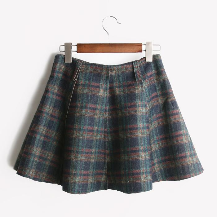 秋冬韩版时尚英伦风显瘦百搭格子毛呢A字裙半身裙 短裙女