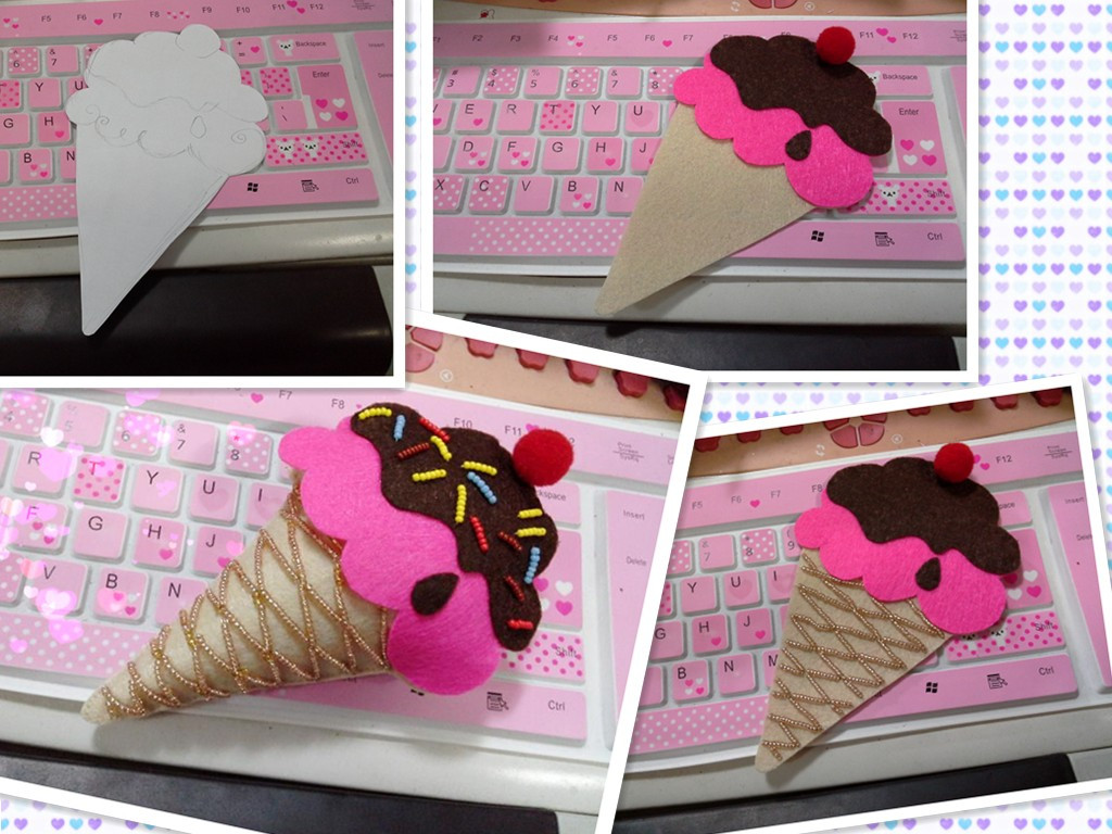 冰激凌甜筒制作过程 不织布 米珠