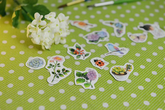 我的原创水彩贴纸第二系列,童话风,森系植物和狗狗主题。