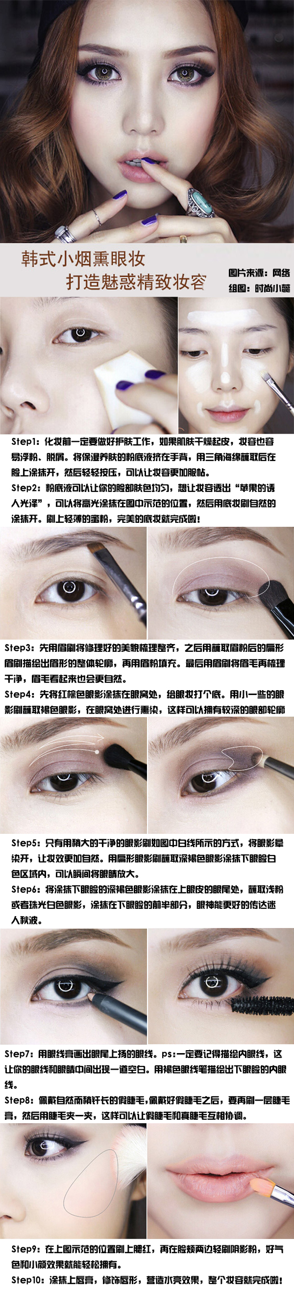 这款妆容很甜美哦,是韩国美妆达人示范得,眼睛化起来有神,唇色粉嫩。约会聚会让人惊艳。推荐的眼影盒是大地色系得,适合各种场合。