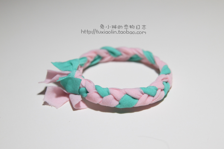 独家原创手作 薄荷绿粉 双色小梳子打结发圈 可做手链哦
