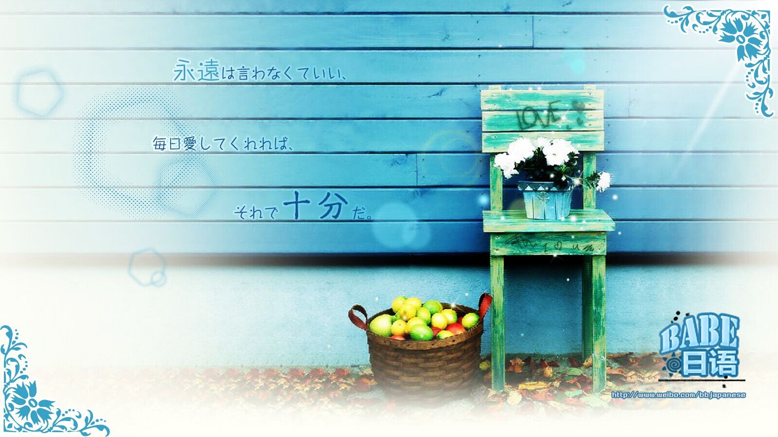 #日语微情话# 第四十一弹~【不必承诺永远,只要爱我一天又一天】口头承诺永远是最靠不住,只有真的做了,才能证明什么[心]【永遠は言わなくていい、毎日愛してくれれば、それで十分だ】更多日语学习内容,请加QQ群:115837389;沪江CT群:81504158;关注微信公众账号:bbjapanese;沪江社团:BaBe简单日语;腾讯视频:BaBe日语。❤BaBe日语伴你精彩每一天