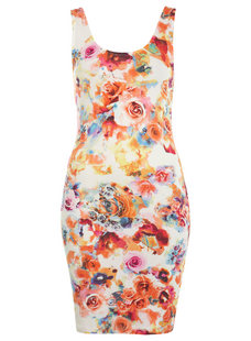 Miss selfridge热情玫瑰印花 背心连衣裙 修身包臀弹力