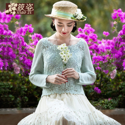 筱姿 浅笑 2015春季新款 复古淑女镂空毛针织衫 毛衣 上衣