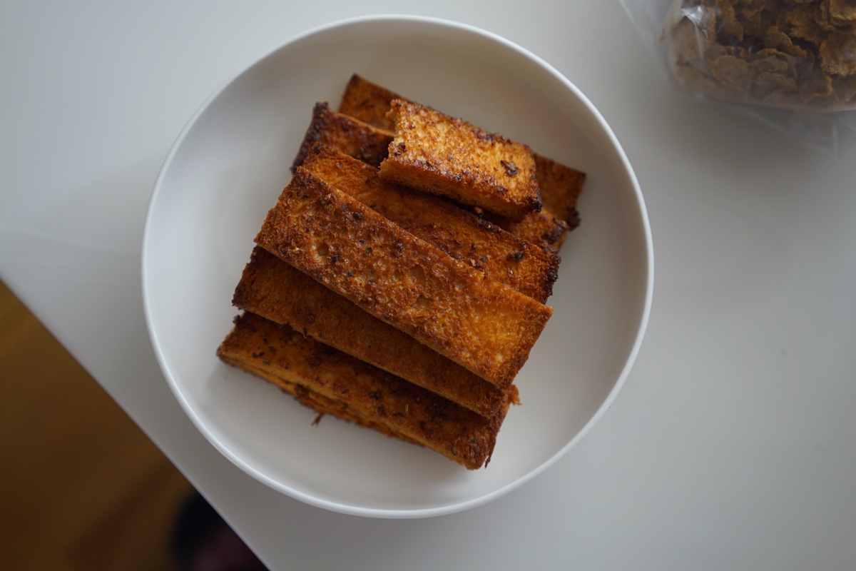 烤大了的蒜香面包条…但脆脆的蛮好吃