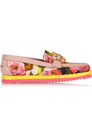 缀饰花卉印花锦缎乐福鞋