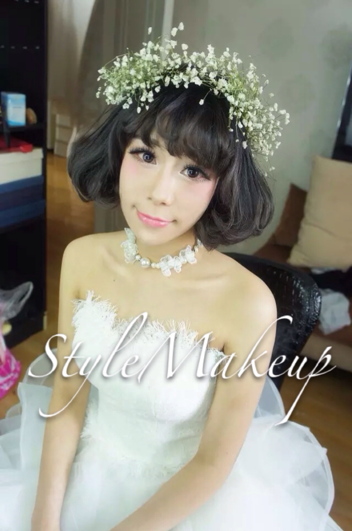 大眼妆 新娘妆 短发 泪眼妆 婚纱