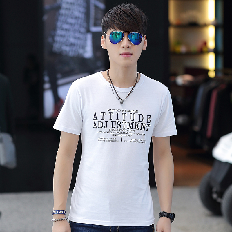 夏季新款男装韩版时尚休闲短袖T恤男式修身纯棉打底衫男士全棉T恤