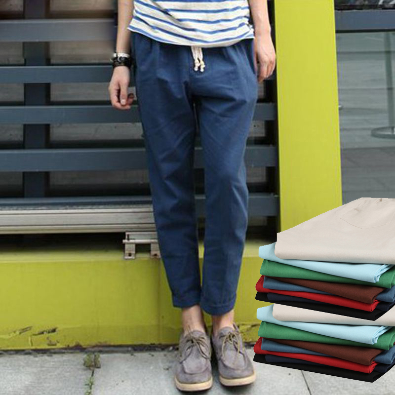 夏季男装亚麻裤夏日棉麻休闲裤 9分裤子男式九分裤情侣小脚哈伦裤