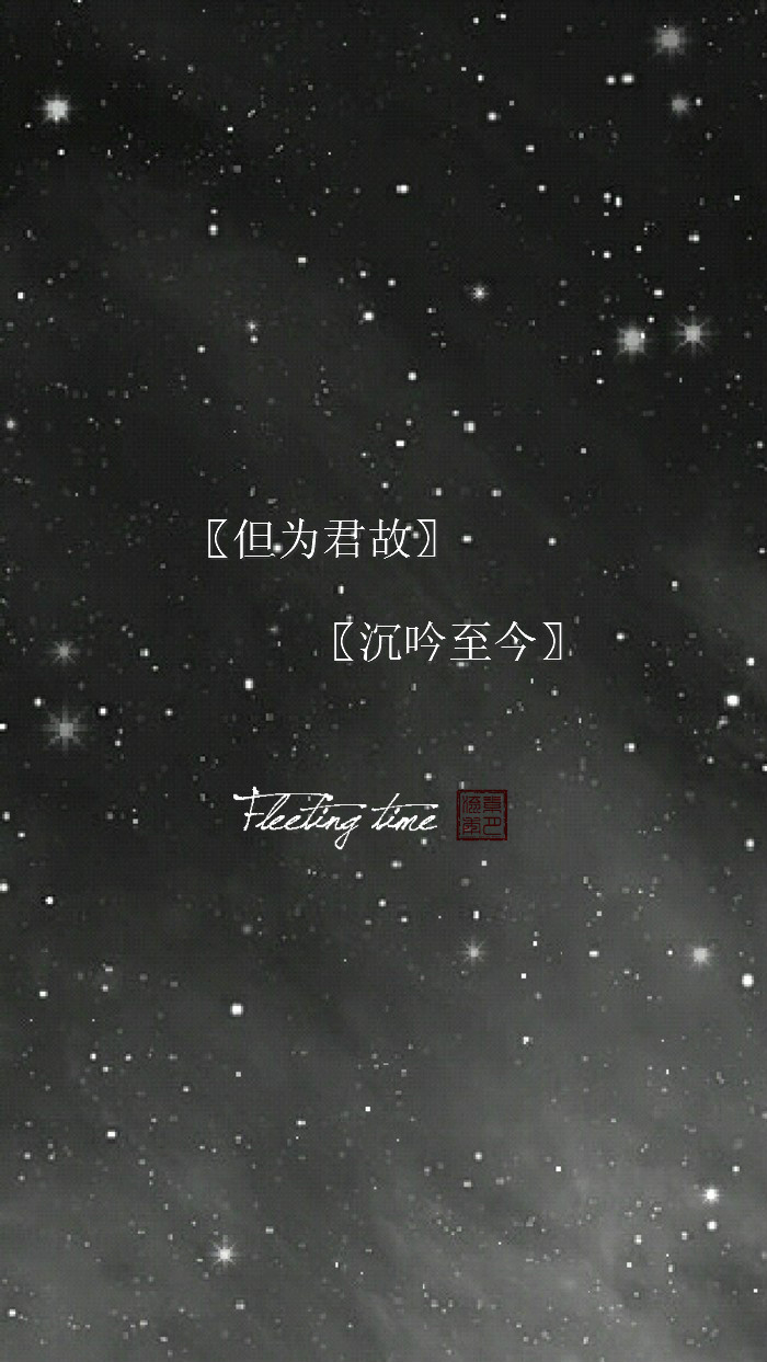 【绣魅玉妖出品,Fleeting time】【黑色星空壁纸系列】充满文艺范的古风八字句子你能感觉到里面的意思吗?【与君有约,风雨不改。你若盛开,清风自来。但为君故,沉吟至今。与卿相依,地老天荒。今夕何夕,吾君可好。得之我幸,失之我命。花期渐远,断了流年。生能尽欢,死亦无憾。我心伤悲,莫知我哀。】(个人制图)平铺壁纸,文字壁纸,锁屏壁纸,星空壁纸,聊天背景图。
