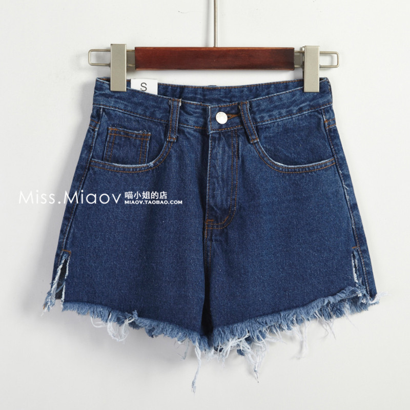 春季新款高腰毛边牛仔裤A字裤夏季开边短裤女阔脚裤宽松显瘦百搭