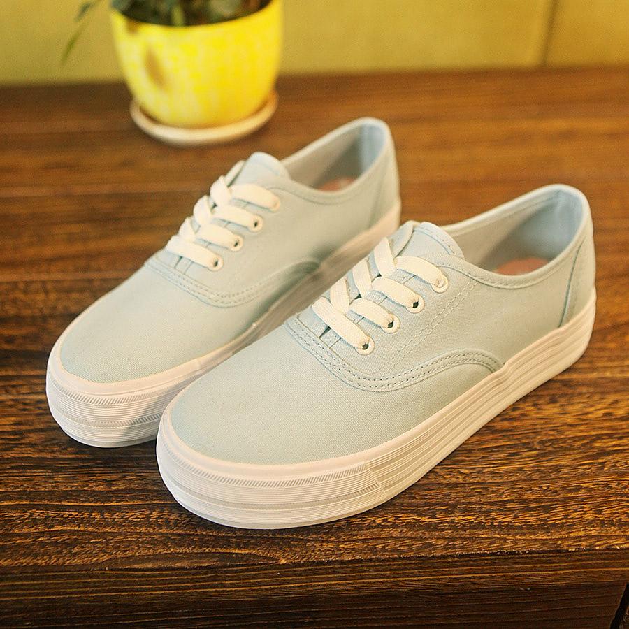 2015春季女式英伦风松糕厚底纯糖果色休闲帆布鞋系带平底单鞋