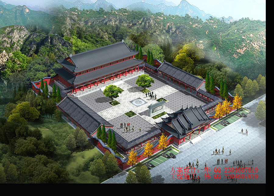 古建筑_寺庙大门..透视角度,仿唐建筑·