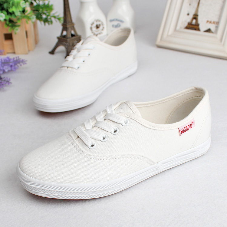 清新文艺范环球韩版舒适小白鞋系带纯白色球鞋百搭女鞋低帮帆布鞋