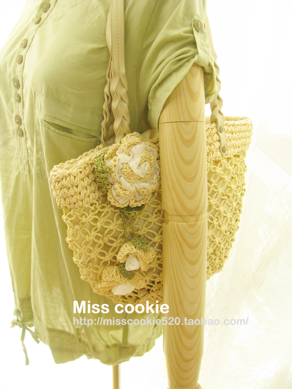 花朵装饰草编包