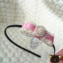 原创手工珍珠花盘扣丝带拼接蕾丝蝴蝶结发箍