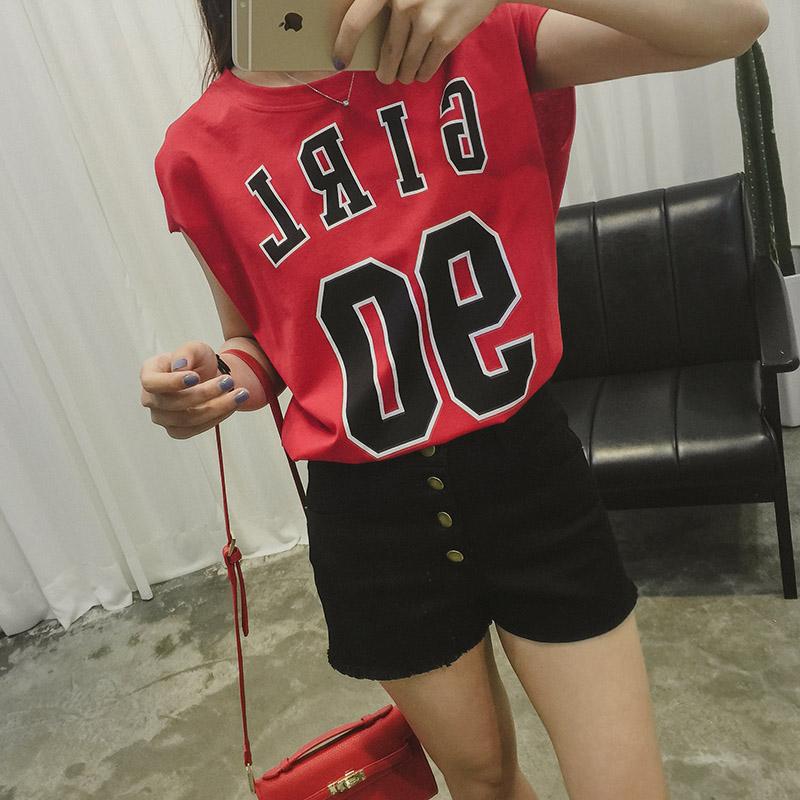 韩版夏季2015宽松棉质无袖背心纯色简约字母数字印花T恤 9179