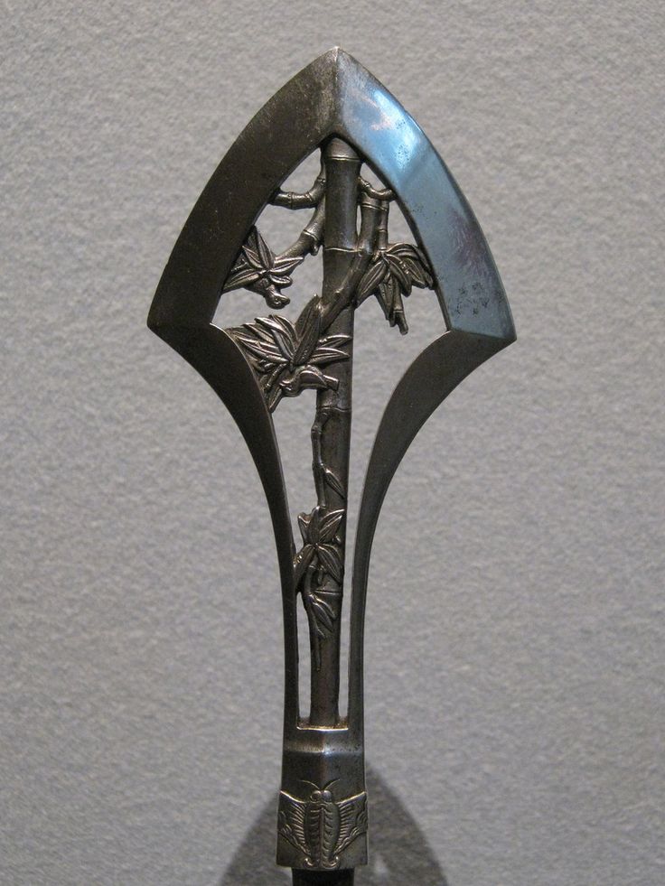 鐔是刀的护手,有丸形、角形、木瓜形,中间有一个让刀身通过的孔,左右两边还有为“小刀”和“笄”设置的小孔。使用者可以在刀不出鞘的情况下取出小柄和笄。