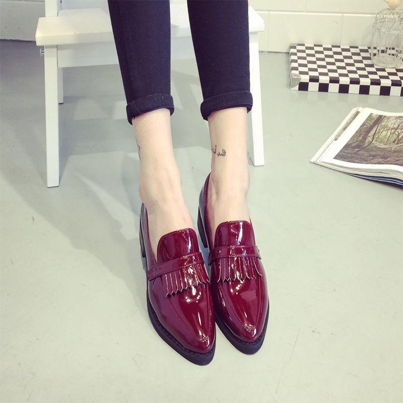2015新韩流低跟单鞋尖头平底鞋时尚流苏休闲皮鞋女鞋潮