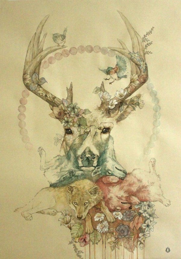 日本画家nana的迷幻森林与鹿