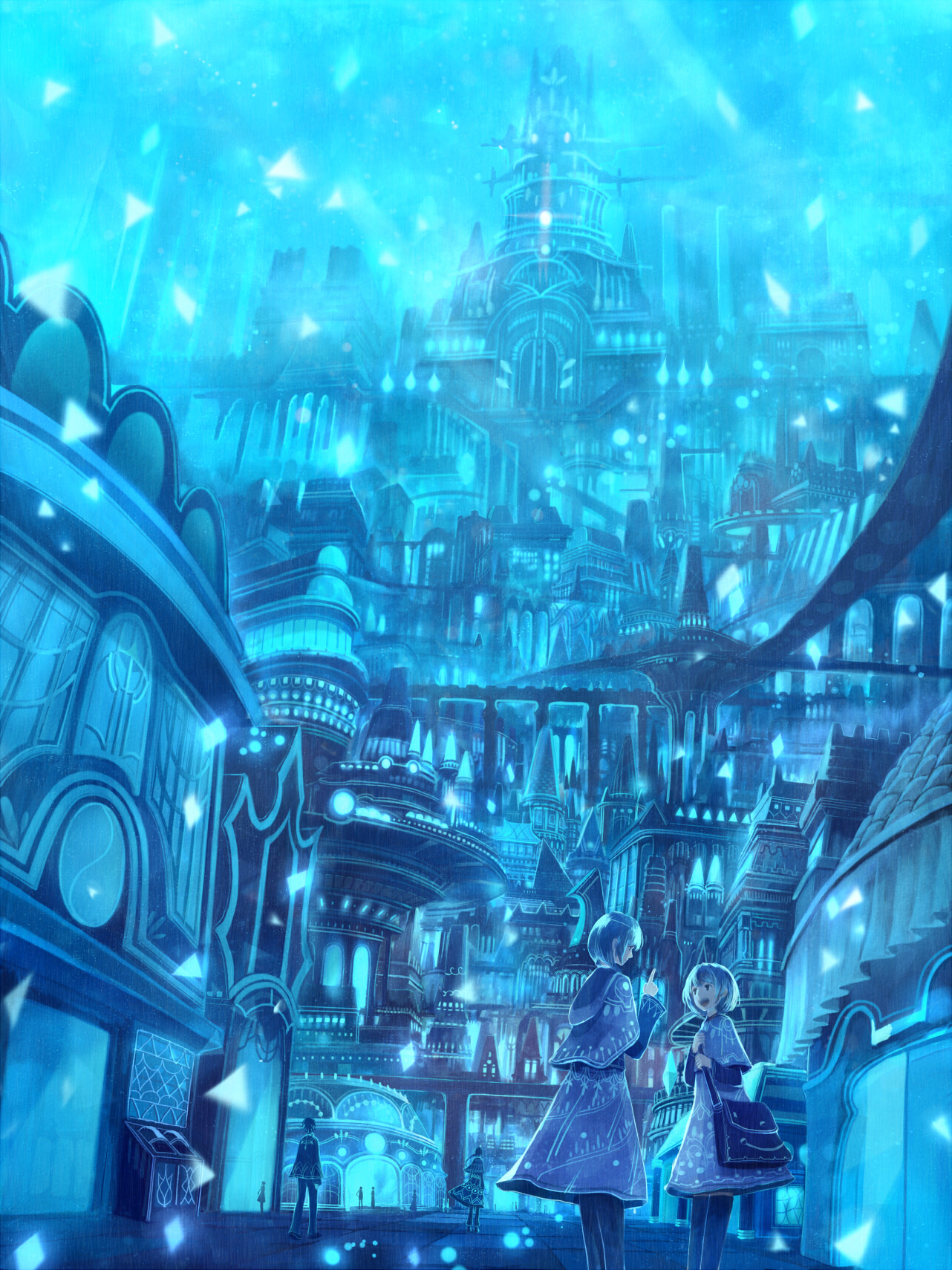 彩色 人物 建筑 奇幻 彩色系 蓝色系 冷色调 暖色调 二次元 壁纸 手绘 插画 p站大触
