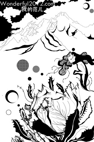 雪莲:线条交错,惬意的勾勒出一幅黑与白的画面,映衬雪莲的纯净。艺术家:吴健雄 www.5dfanr.com