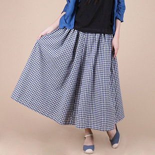 文艺范复古休闲格子长裙A字长裙大摆半身裙