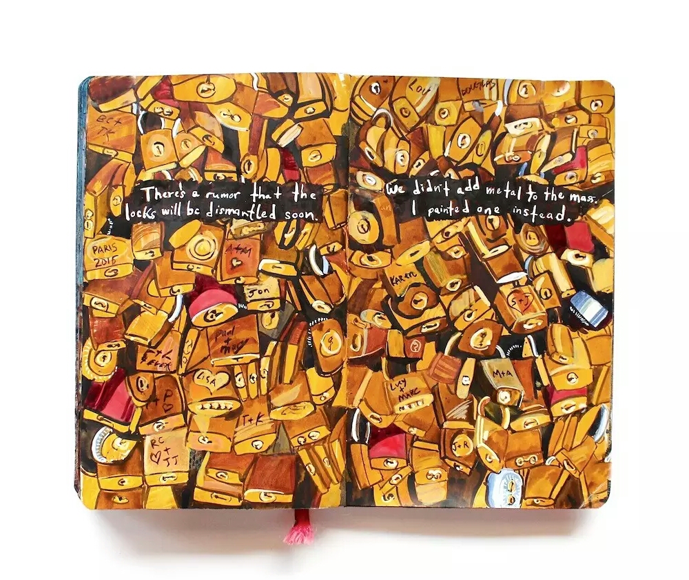 美国女画家Missy Dunaway 用Moleskin素描本记录了她的每段旅程 巴黎情人锁桥
