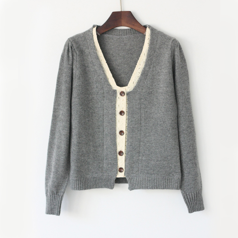 蕾丝木扣针织毛线开衫
