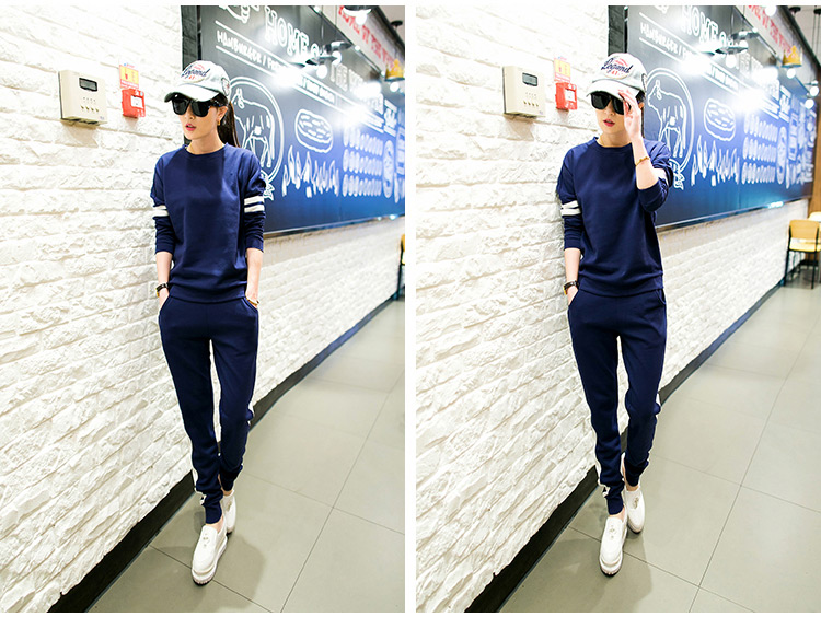 2015春秋季新款韩版时尚休闲运动套装女拼色修身显瘦运动两件套