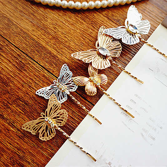 复古蝴蝶结一字夹 金色银色发夹发饰