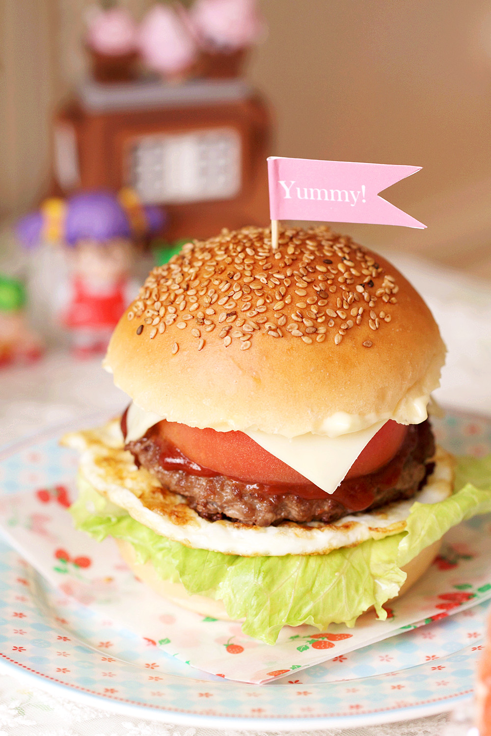 牛肉汉堡。昨晚烤了汉堡胚,早上煎牛肉饼和鸡蛋,夹上太满足啦,一大口都咬不住。