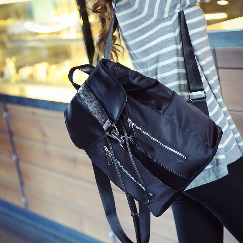 八妹流行简约尼龙双肩包休闲防水背包软面女包时尚牛津纺旅行包