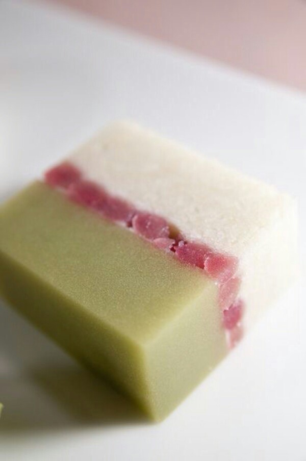 日式点心,抹茶红豆糕。