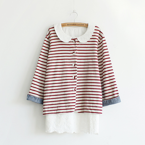 野挞 2016新款夏装女装印花娃娃领日系打底衬衣 长袖雪纺衬衫女