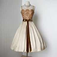 Cafe-au-lait lace dress #1950s