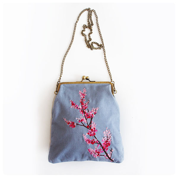 OOPSLOOK原创 摘一枝永不凋谢的花 刺绣 撞色 古铜扣 小挎包