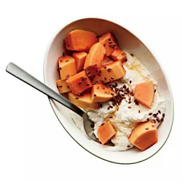 1杯脱脂意大利乳清干酪 1茶匙蜂蜜 1/2杯切碎的木瓜 1/2茶匙亚麻籽 400卡路里