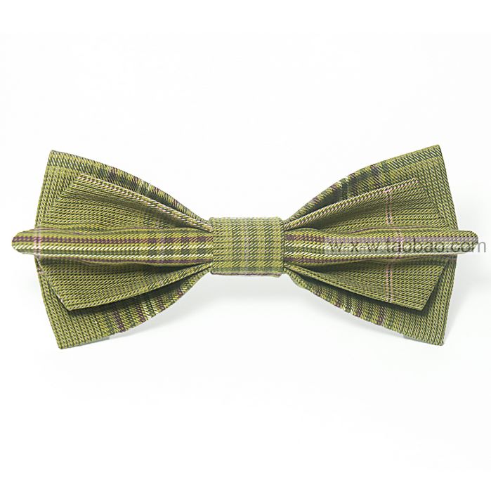 Mr.W大布料原创设计-暗黄/英伦/格纹/双层/褶皱/尖头/煲呔/领结
