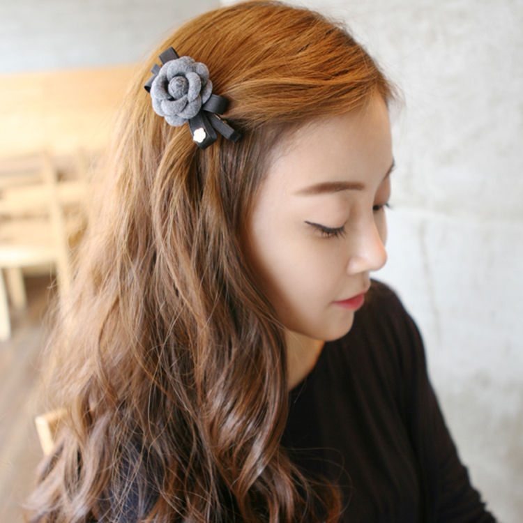韩国进口发饰头饰小香风山茶花蝴蝶结花朵发夹边夹鸭嘴夹