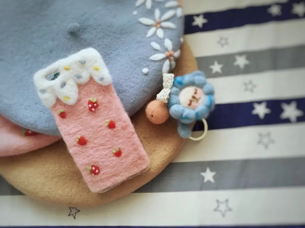 羊毛毡草莓手机壳