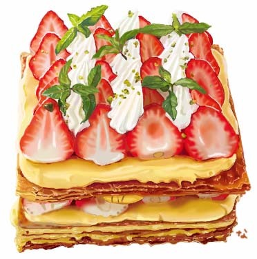 晶莹剔透的手绘草莓蛋糕。丨日本插画师nicole
