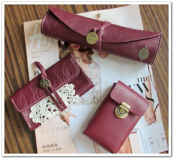 蕾丝!牛皮!魅力酒红色!手工制作手机包,让你与众不同