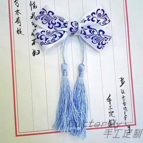 妖记原创手工发卡蝴蝶结发饰发夹头饰复古飘带中国风青花瓷cos-淘宝网